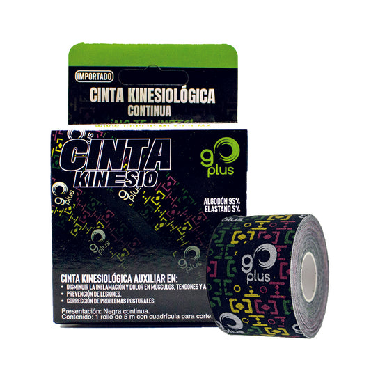 10 Pack Cinta Kinesiológica Negra 5m Diseño Go Plus Mayoreo Go Plus