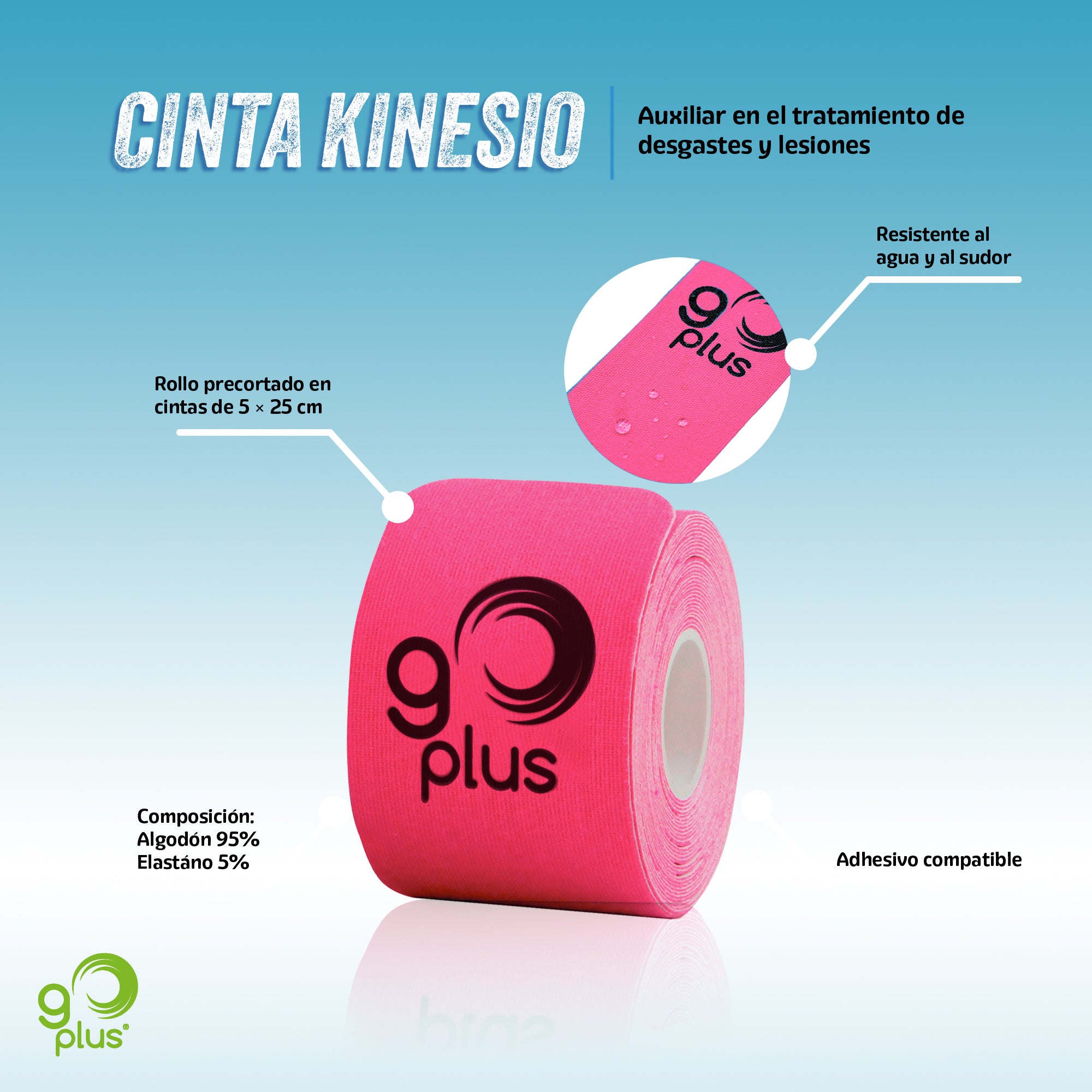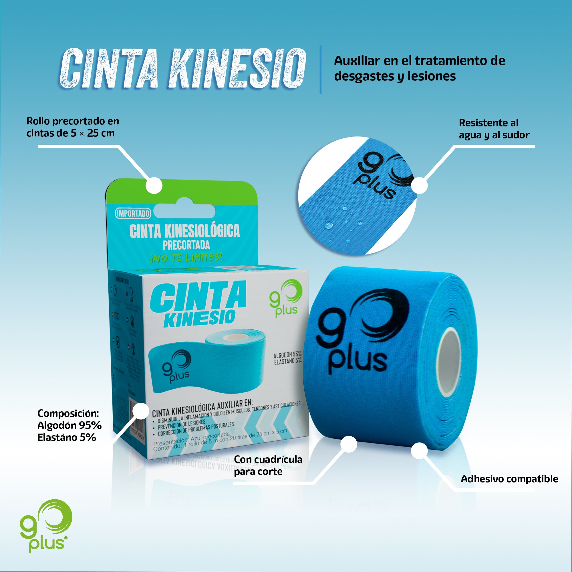 10 Pack Cinta Kinesiológica Azul Go Plus 5m Pre-cortada Mayoreo Go Plus
