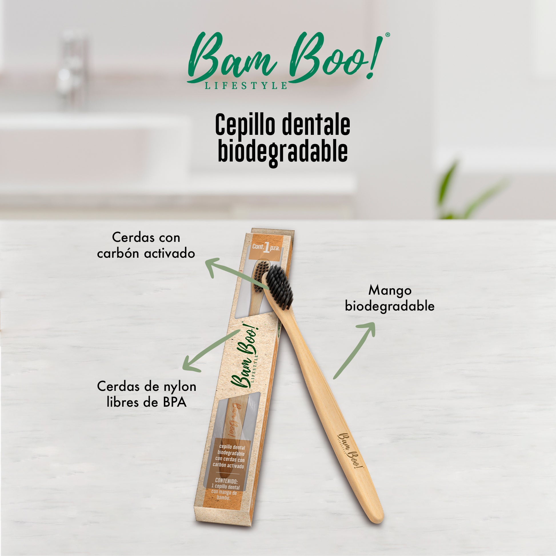 Cepillo Dientes de Bambú Cerdas Carbón Activado 1pz Bam Boo! Lifestyle