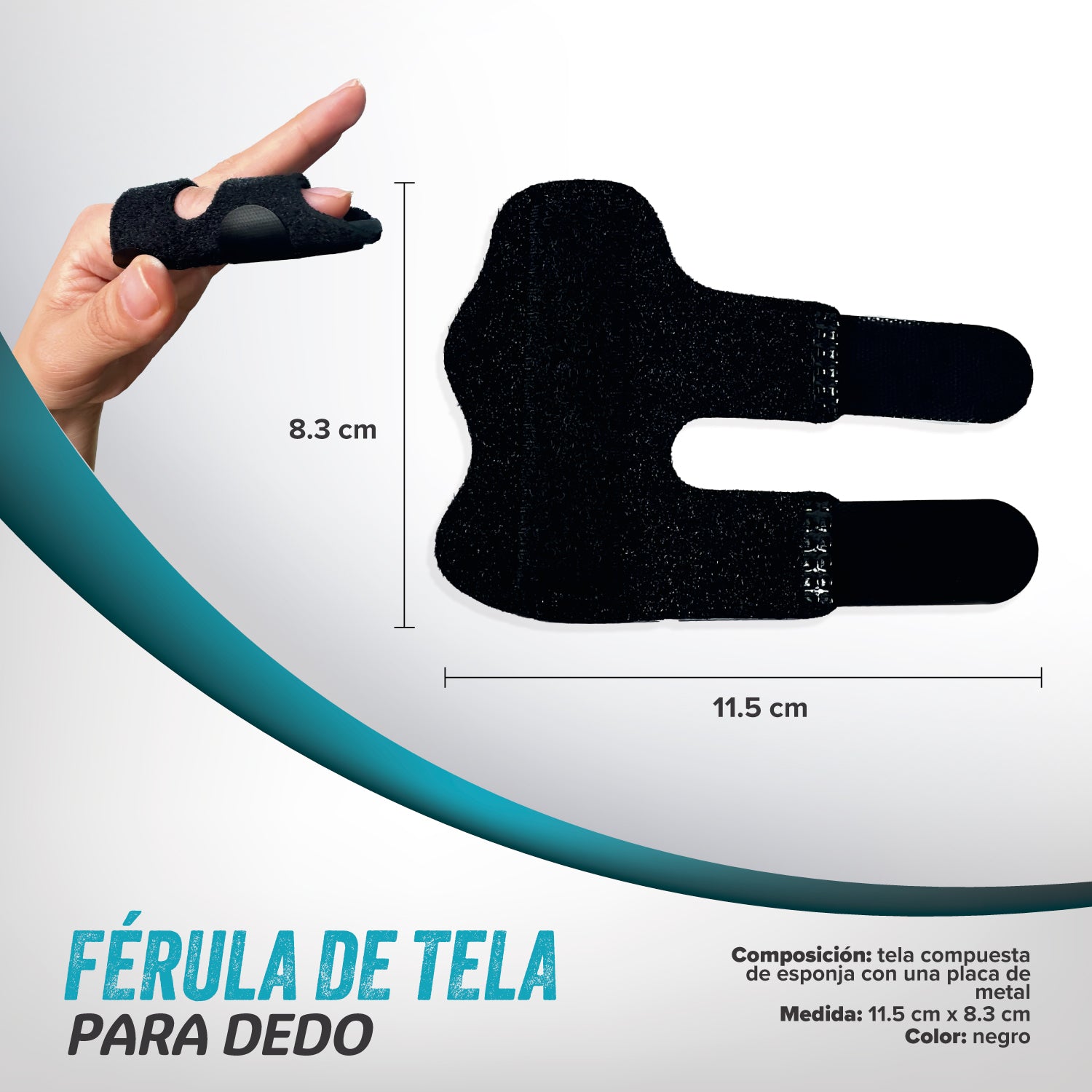 Diseñada para inmovilizar y estabilizar los dedos sin rigidez excesiva, nuestra férula de tela proporciona el soporte y la protección necesarios. Fabricada con una combinación de tela acolchado tipo esponja y una placa metálica interior, esta férula ofrece una sujeción firme sin comprometer la comodidad. Su diseño ligero permite una ventilación adecuada, ideal para usar durante periodos prolongados sin causar molestias. Se ajusta fácilmente a diferentes tamaños de dedos y es perfecta tanto para uso diario como para recuperación de lesiones leves. Ideal para personas activas que buscan alivio sin limitar por completo el movimiento.