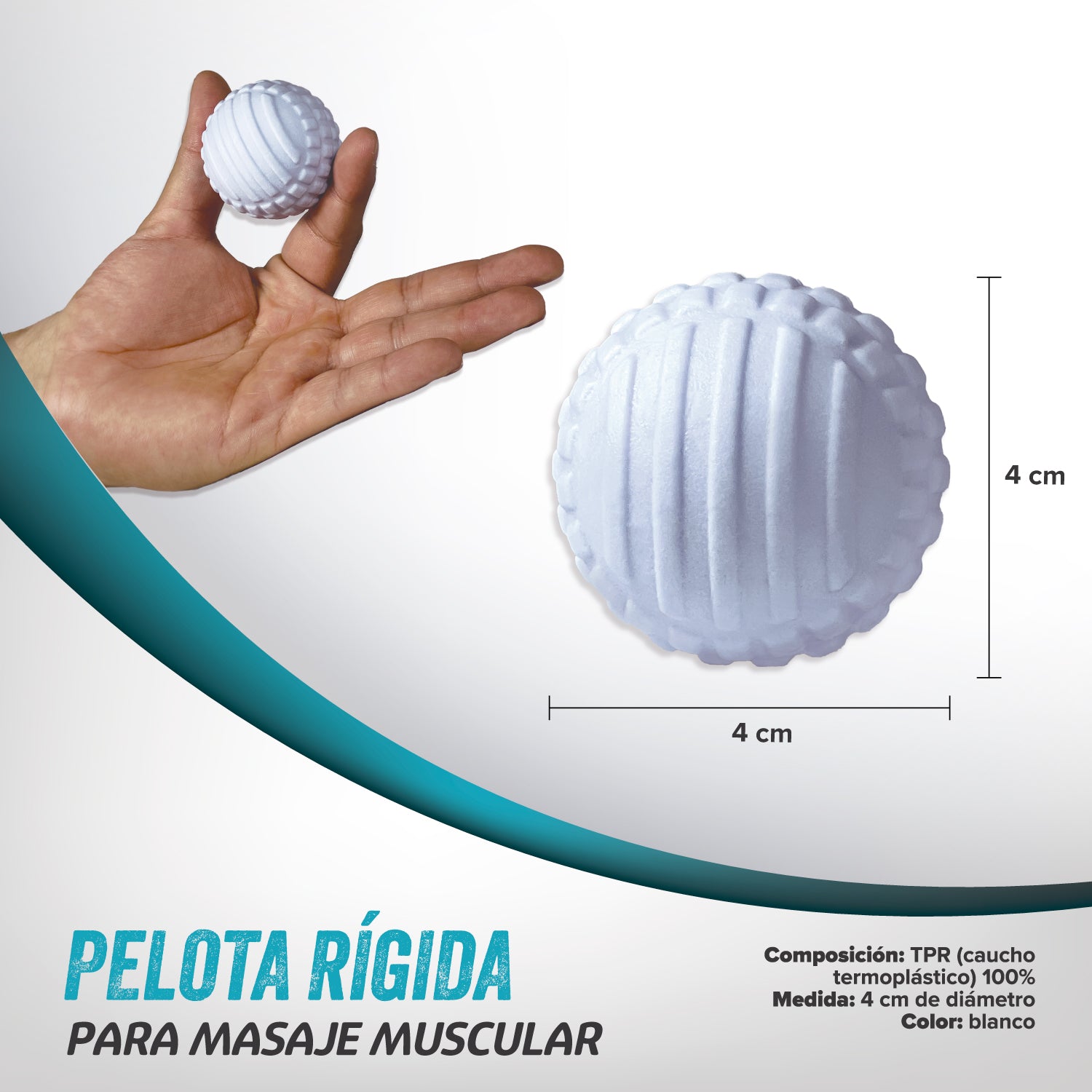 • Fabricada para brindar un masaje focalizado, útil en rutinas de automasaje y rehabilitación.