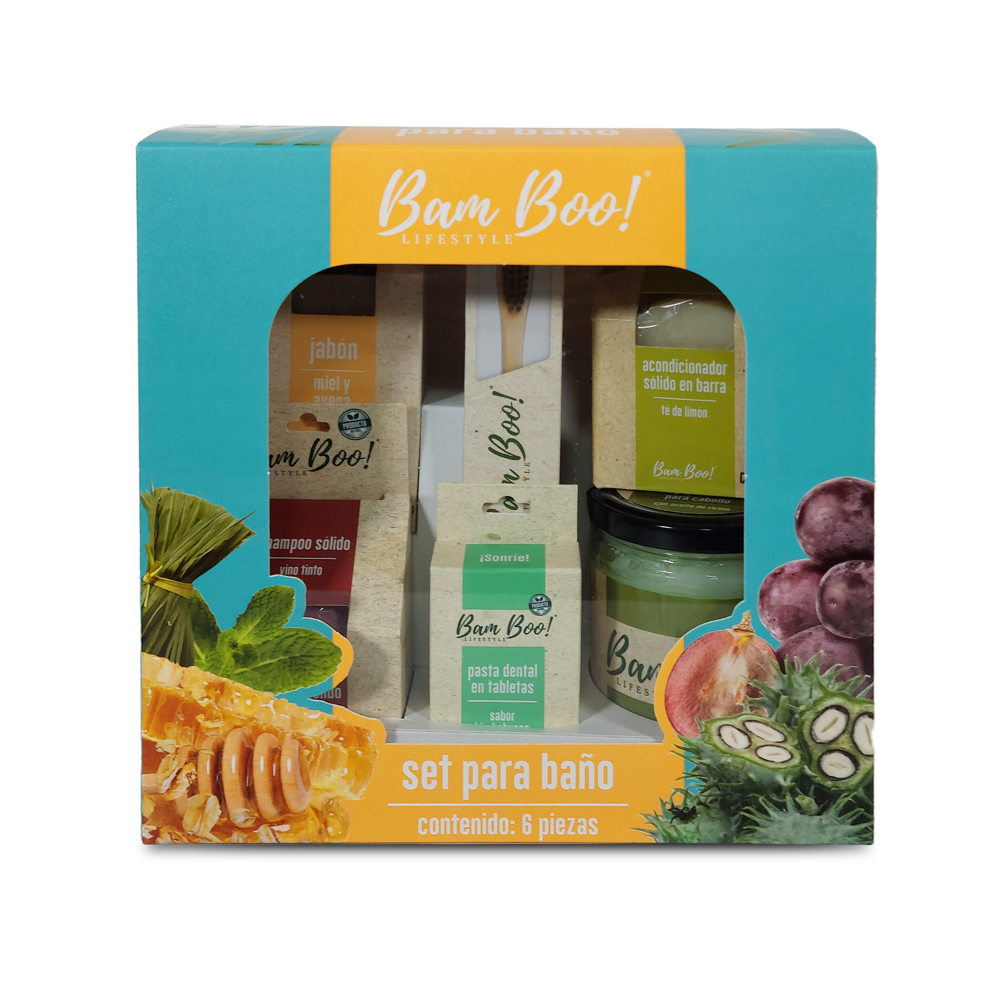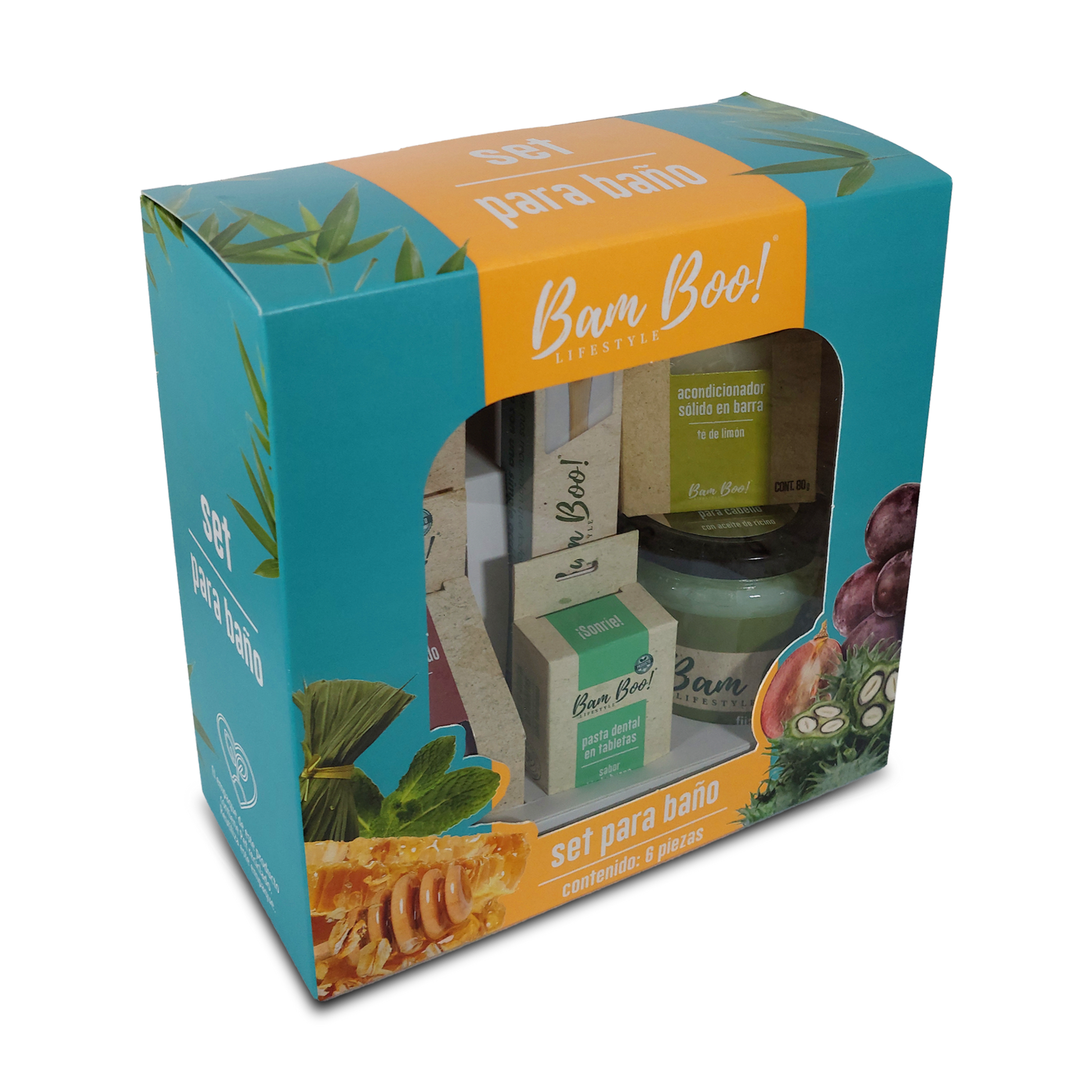 Transforma tu rutina diaria con el Set para baño Bam Boo! Lifestyle, una opción excepcional que brinda productos básicos y esenciales para tu ducha y cuidado dental. Descubre la innovación con nuestra pasta dental sólida, shampoo sólido y acondicionador sólido, diseñados para ofrecer una experiencia de cuidado sólido única.