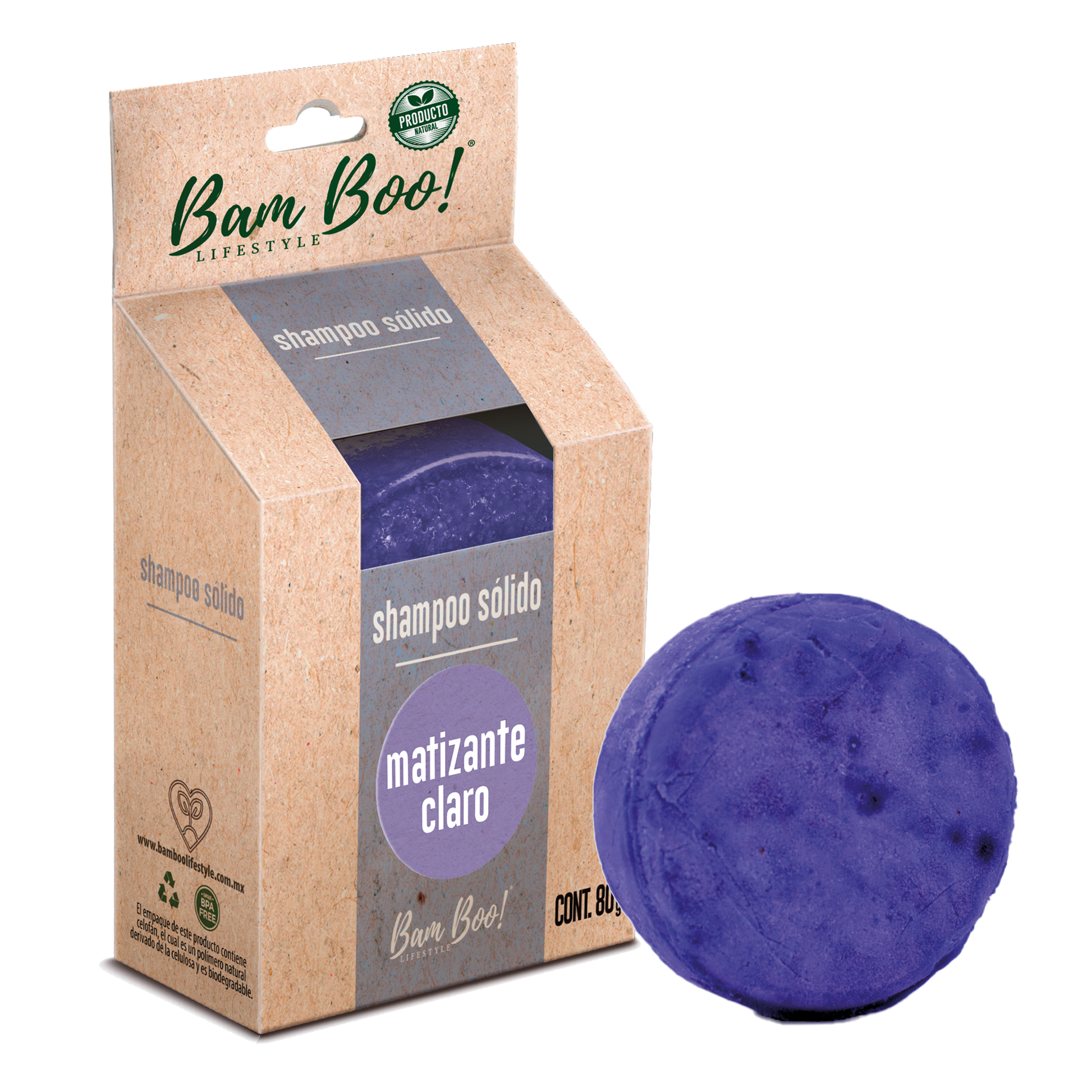 Shampoo Sólido Artesanal Matizante Claro 80 g Bam Boo! Lifestyle