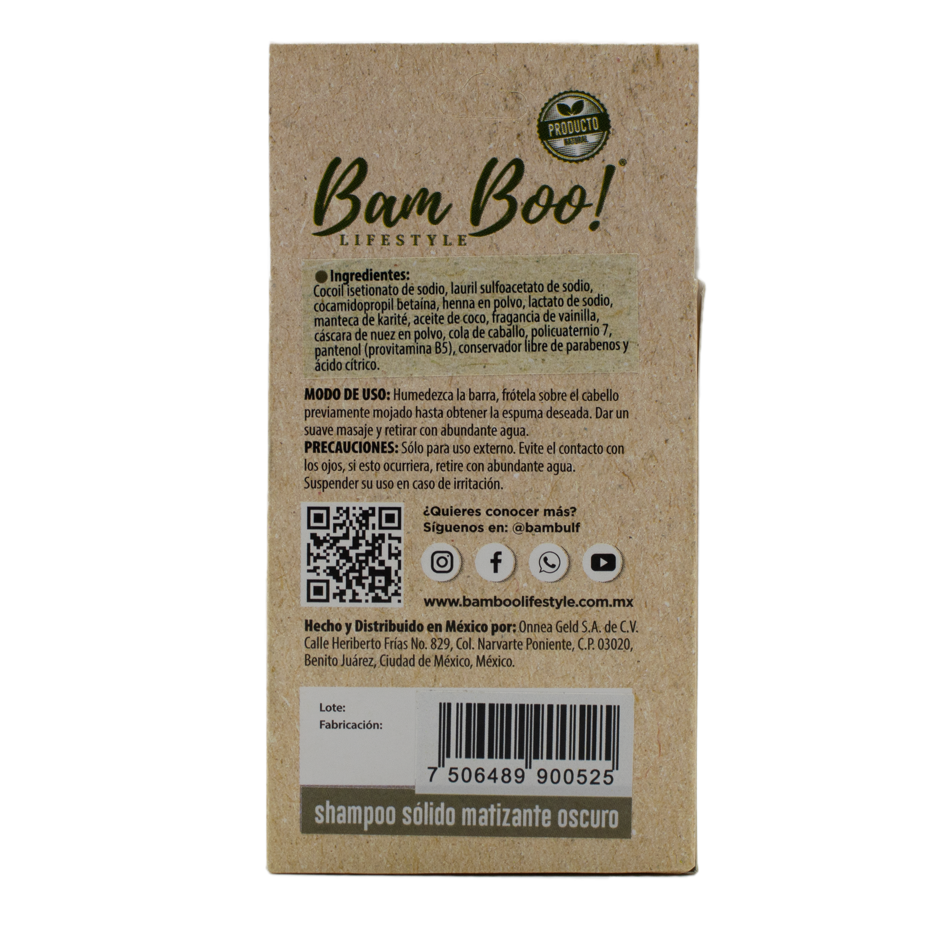 Shampoo Sólido Artesanal Matizante Oscuro 80 g Bam Boo! Lifestyle